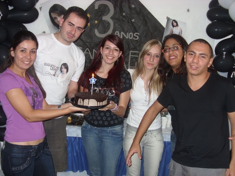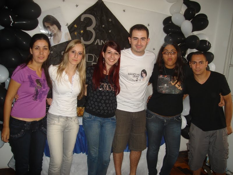 Dia 15 de Abril o Sandy Leah Fc - Porto Alegre completou 3 anos. E para festejar fizemos uma festinha dia 17 de abril com direito a decoração especial, salgadinhos, bolo, sorteios, presentes e brincadeiras! Um dia especial como este não podia faltar os grandes amigos de sempre Ana Paula, Joana, Jozimara, Marnise, Carlos, Éder, Anoula e o filho! A decoração no estilo preto e branco com muitos balões, e com fotos atuais da Sandy destacaram o visual da festa que tocava direto músicas de Sandy e Junior. Forão feitos sorteios como fotos da Sandy, postais e vários pares de ingressos pra cinema.